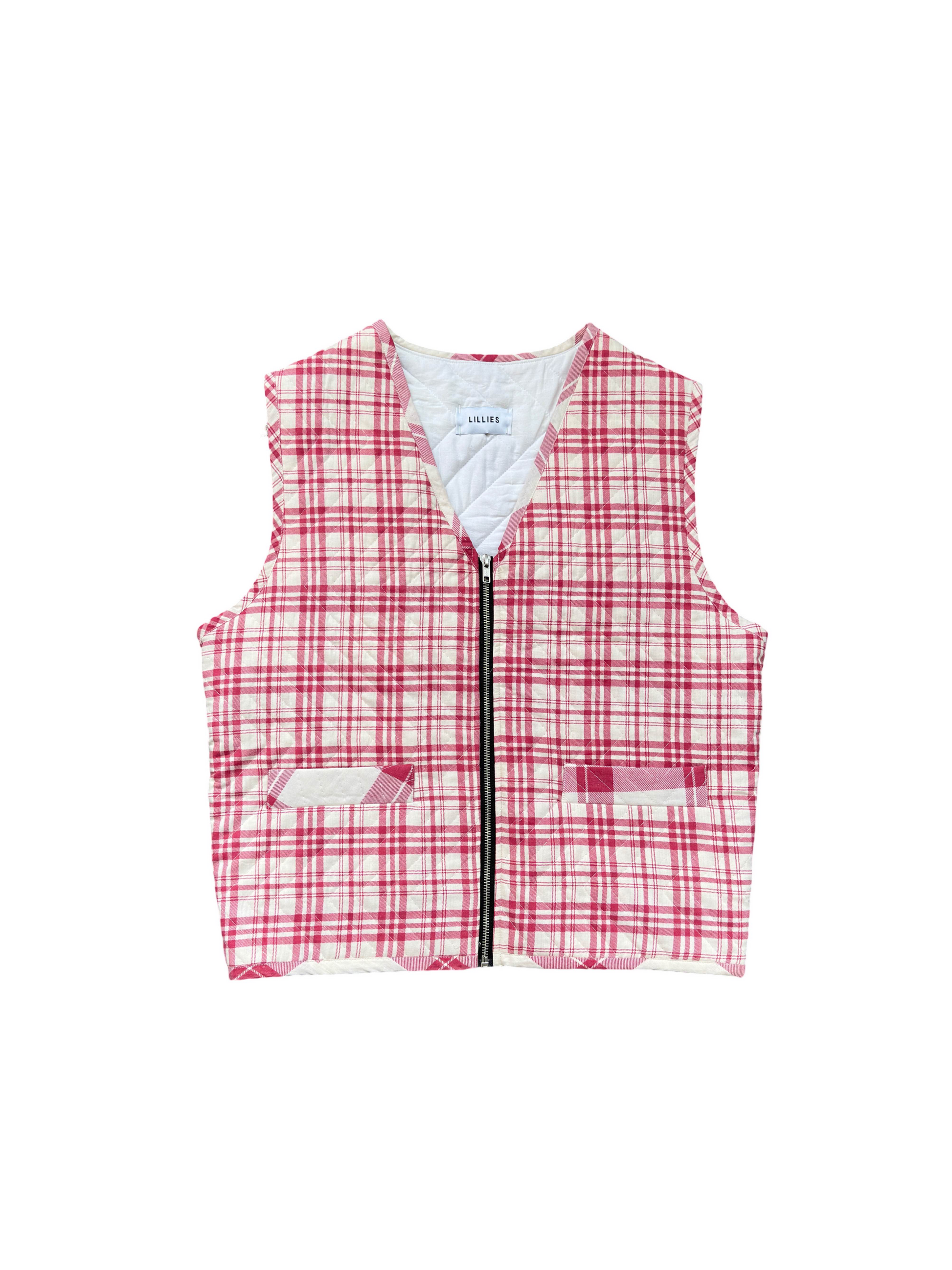 The Grandmother vest had been using my childhood blankets. Created using up-cycled fabric made by hand using sustainable materials. Each vest is one-of-a-kind piece, maximising fabric use age to reduce waste.