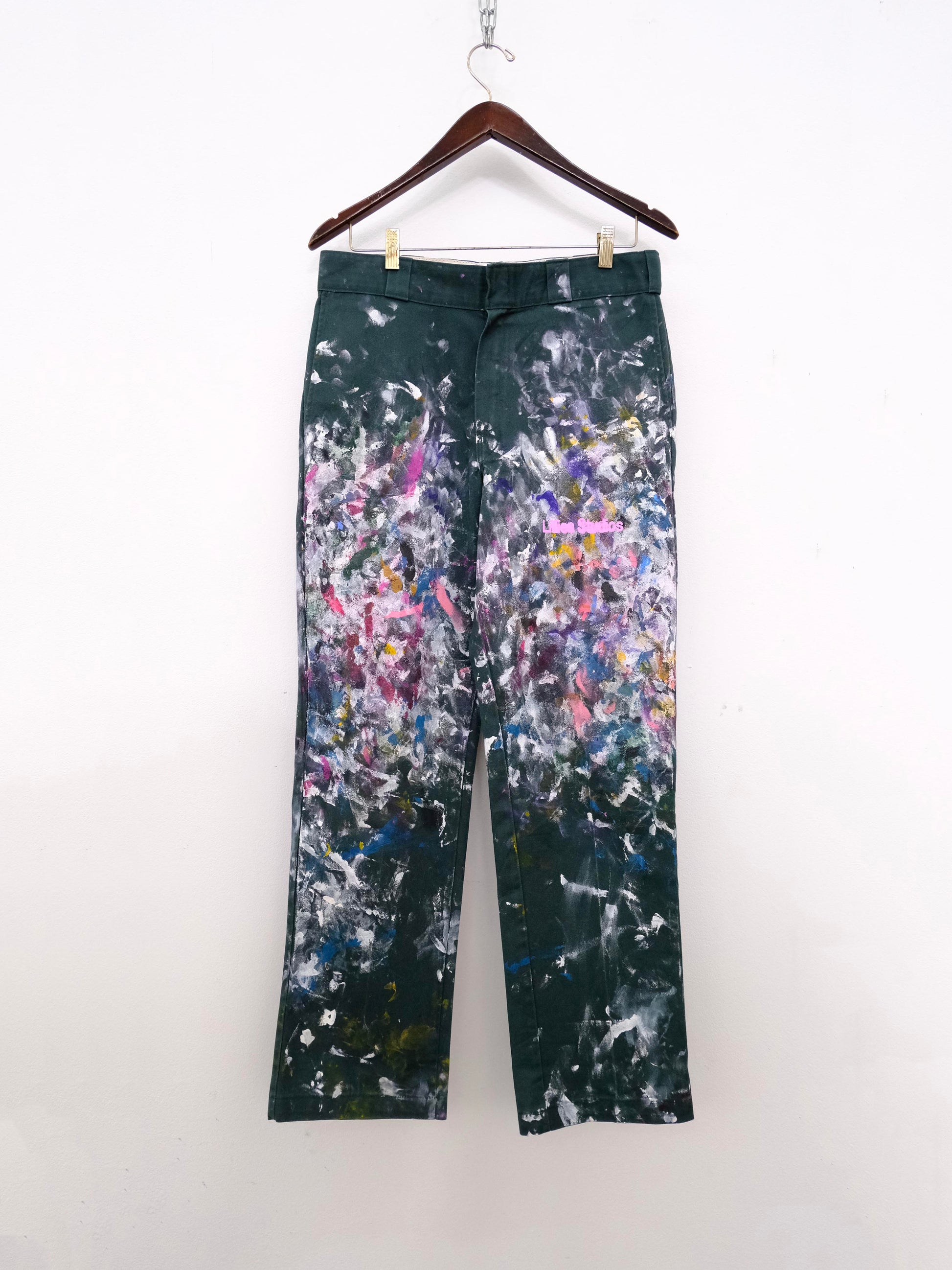 These pants are original Dickies from the 1990s, sourced vintage and hand-painted with oil paint and acrylic in our studio.Each pair is carefully cleaned, restored, and transformed through hand-painted detailing, creating a unique piece that carries both history and craftsmanship.